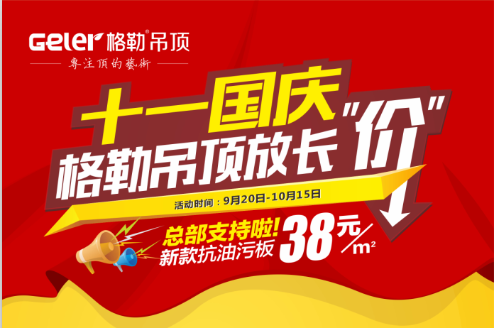金秋十月,举国同庆;神州大地,繁花似锦;家和国盛,乐曲如潮,借着这伟大而美丽的日子送上格勒吊顶最诚挚的祝福,我们愿您在这黄金假期省得乐趣横生。