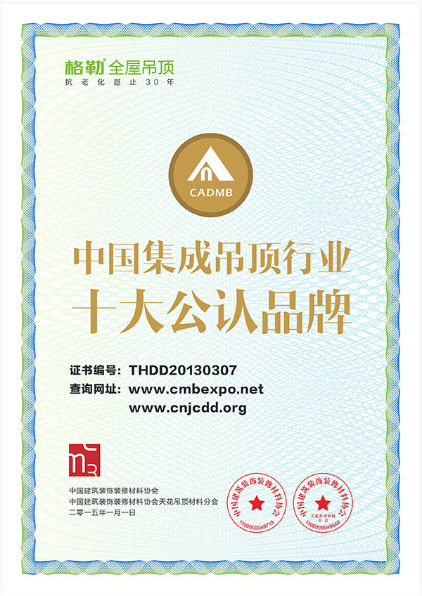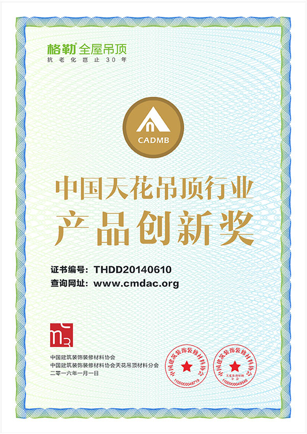 6月被授予“互联网吊顶第一品牌”;被授予“中国绿色环保产品”;