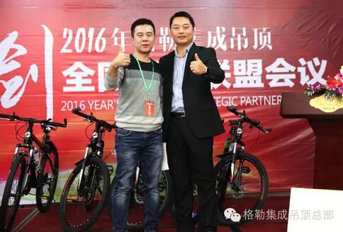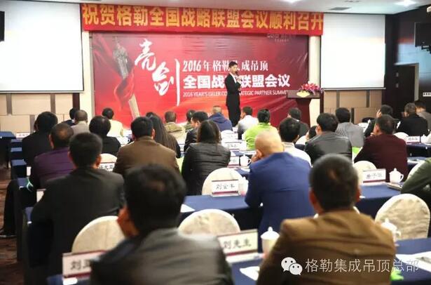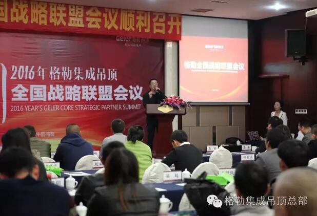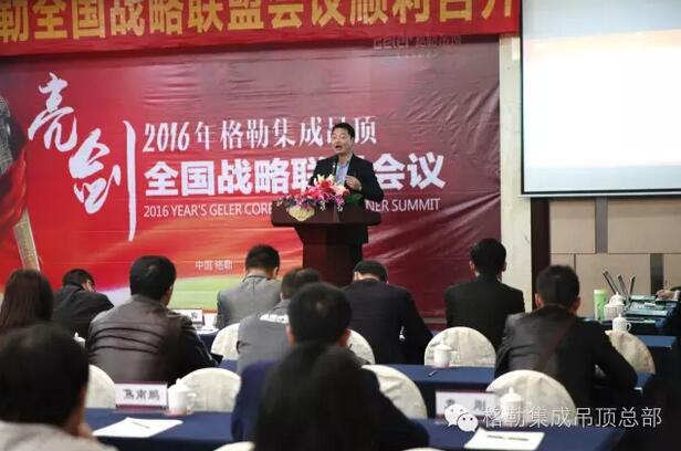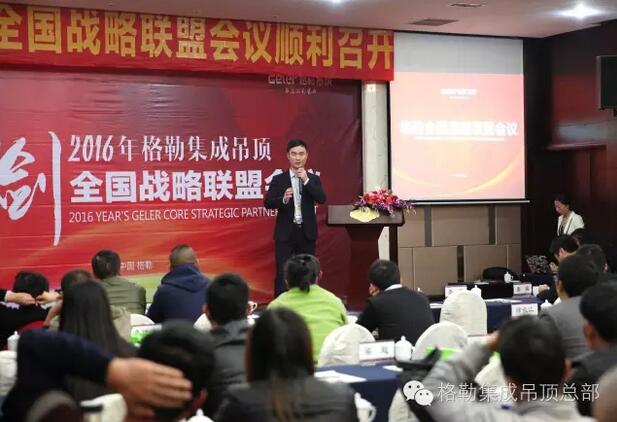 上午9时,在主持人激情的开场下,格勒全国战略联盟会议拉开帷幕。在与会人员的热烈掌声中,格勒集成吊顶董事长徐总上台致辞,介绍了格勒是一家有梦想的企业,始终坚持O2O道路,致力于为用户打造艺术级高品质生活。徐总说公司现虽处于发展阶段,但公司发展迅猛。目前公司拥有专卖店300多家,天猫、京东等电商网点全面铺开。格勒专注顶的艺术,奠定了行业品牌地位。新态势下新发展,徐总也在现场寄语全体代理商,愿与格勒家人一起共同成长,合作共赢!