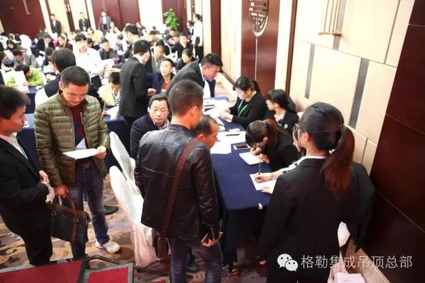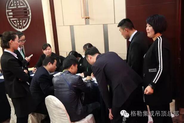 随后,格勒集成吊顶招商部施经理上台介绍了格勒的市场运作模式,并邀请了格勒大家庭的成员:区域经理代表、设计部、电商部、售后部代表纷纷上台展示自我,诚挚邀请大家加入格勒。施经理表示格勒是集成吊顶行业投资的最佳选择,为参会者细致地描述扶持政策,你开店我投资,你开业我送单。让台下的代理商看到了加盟格勒的美好前景。