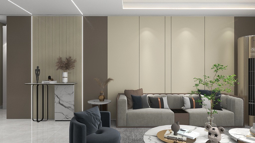 设计客厅背景墙时,墙板直接拼接会有点生硬,而在墙板间加上格栅,让两面不相关的墙建立连接,整面墙的设计会更具美感哦!