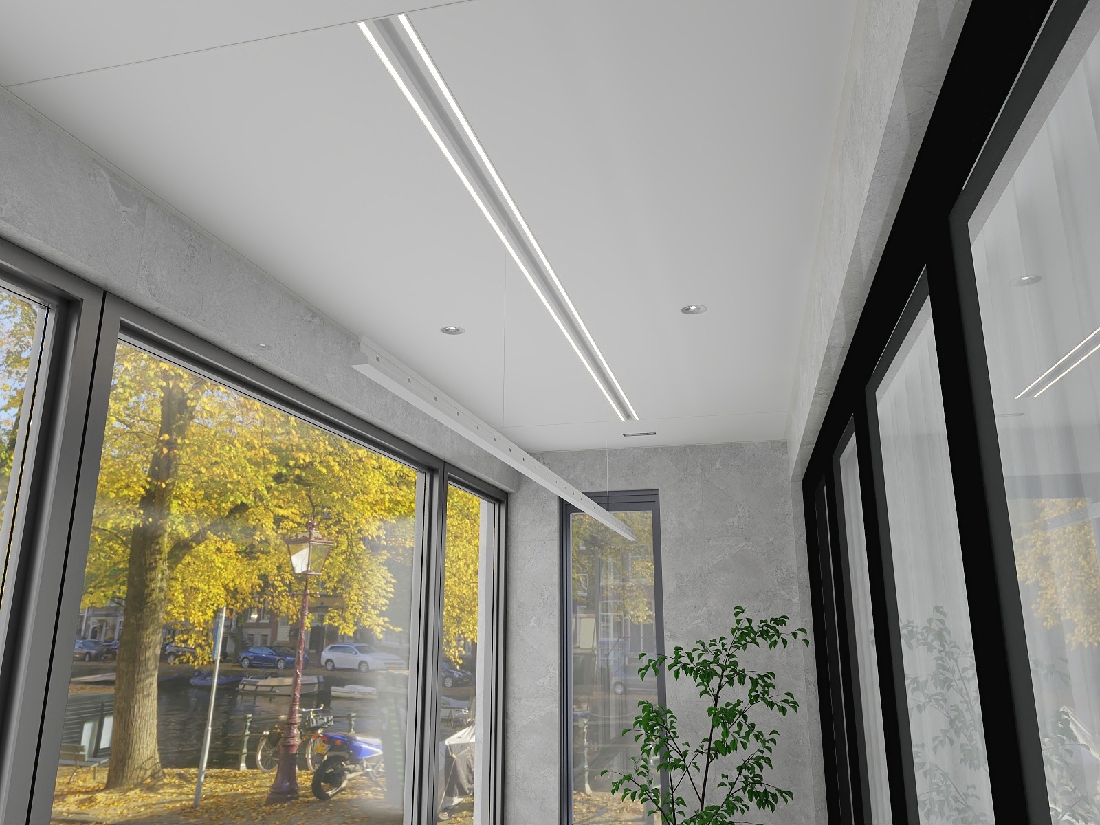 隐藏式晾衣机能完美融入吊顶内,不用时自动收进吊顶,收放自如。